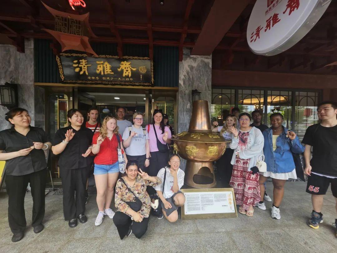 文明的深度對話,同樣在西安街頭巷尾升騰的煙火氣中熱烈展開。訪學團走進西安飯莊、德發(fā)長餃子館、同盛祥、清雅齋、西安烤鴨店等承載著城市記憶的中華老字號。在非遺大師的引導(dǎo)下,青年學子們親手掰開一塊塊坨坨饃,感受饃粒大小對湯汁吸收的微妙影響;嘗試捏出形態(tài)各異的花樣餃子,體驗指尖上的匠心……這不僅是味蕾的盛宴,更是理解西安生活美學、感悟中華飲食“食不厭精,膾不厭細”智慧的獨特課堂。