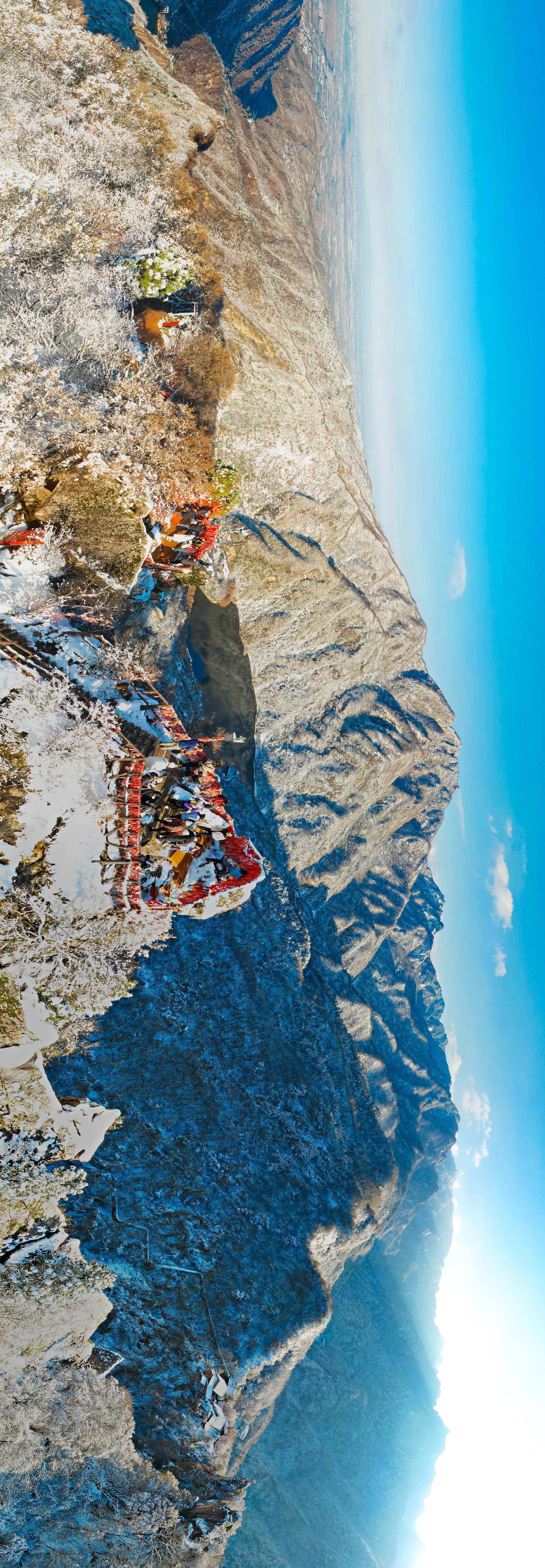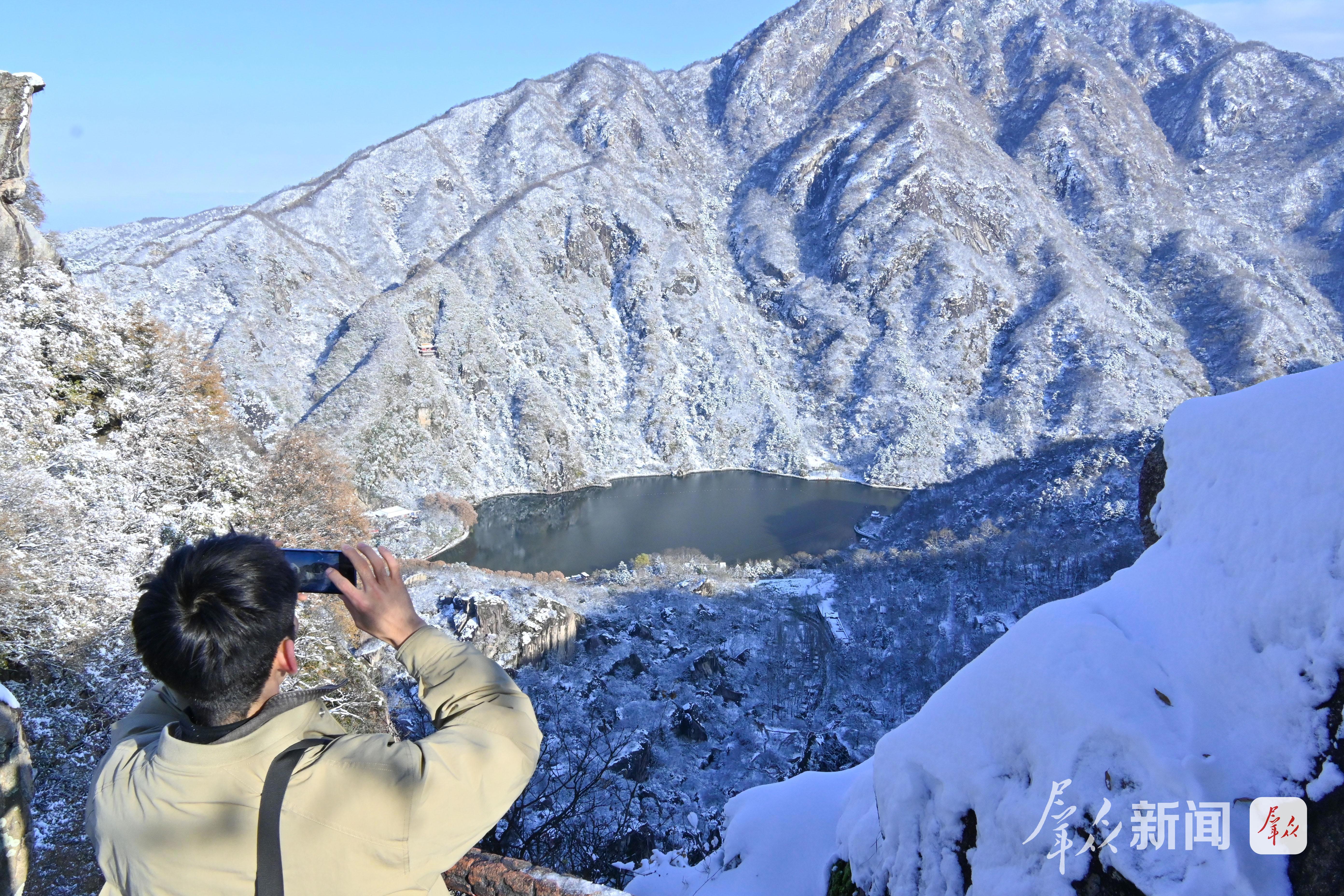 11月17日,西安翠華山景區(qū)內,游人漫步于銀裝素裹的靜謐山間,宛若置身一幅徐徐展開的水墨畫卷。