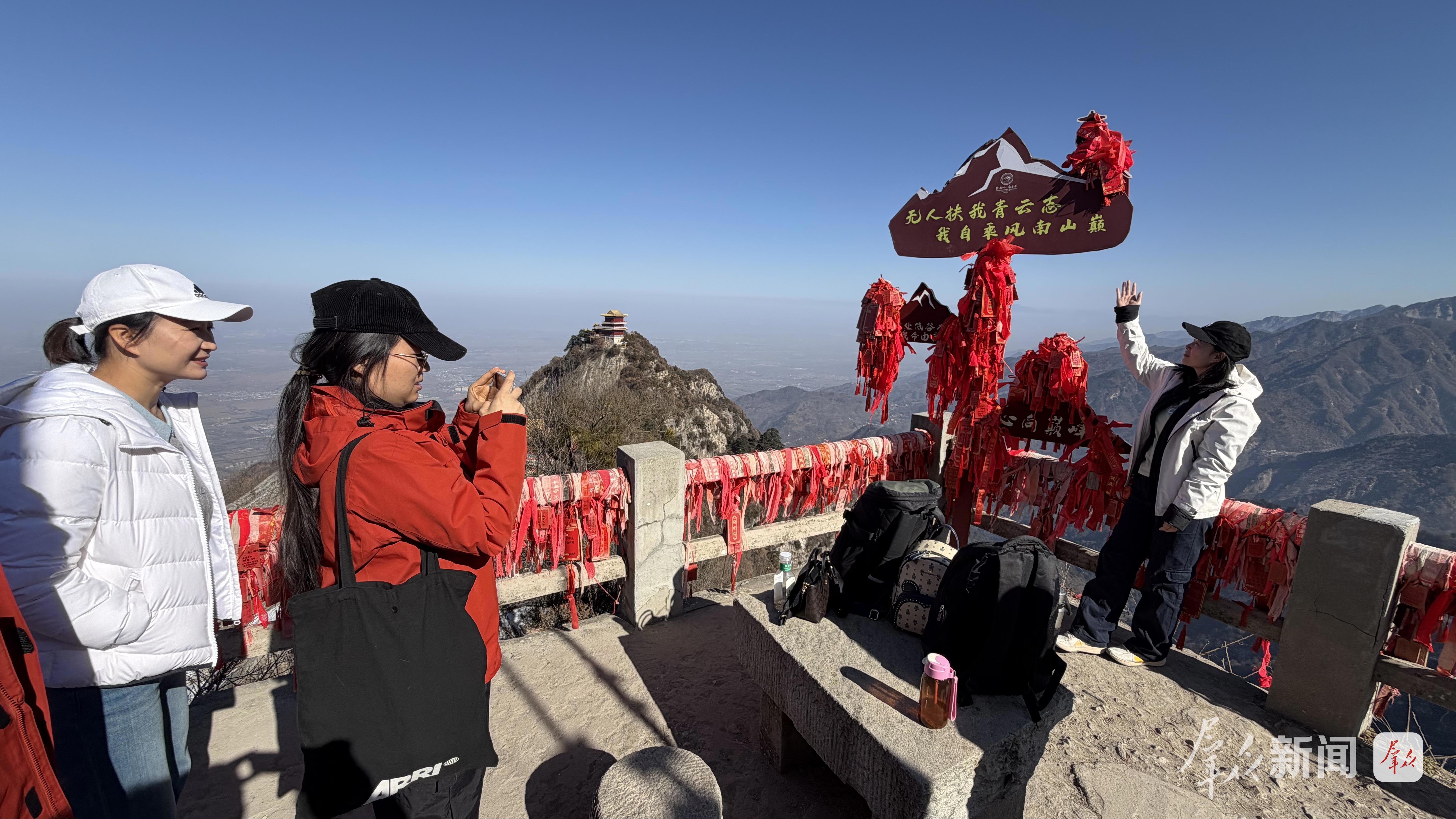 游客們一邊爬山,一邊領(lǐng)略南五臺(tái)的冬日美景。
